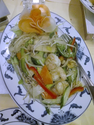 De gerechten waren niet echt om over naar huis te schrijven, de kip was grauw en grijzig van kleur en zo te proeven duidelijk opnieuw ingevroren en ontdooid. Het was niet lekker en er zaten 'wilde', taaie stukken in. De loempia's hadden teveel (slecht) goedkoop vlees. De olie die ze zowel voor de kip als voor de loempia's gebruiken was zo te proeven van de 'mindere kwaliteit'.