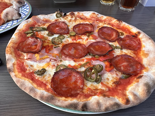 Read moreEs kam bei mir eine mega Pizza. Mehr als gut belegt und dann bemerkte ich das der Boden roh war zu 80 Prozent. Ich sagte sie sollen sie noch 10 Minuten in den Ofen tun. Nach 2 Minuten kam sie wieder und war immer noch roh. Zum Glück wurde die Kleinkinderportion Spaghetti in normaler Größe gebracht. So konnte ich da meinen Hunger stillen. Leider war ich von den Nudeln auch net begeistert sowie meine Freundin von ihren Spaghetti. Am Anfang kam ein kleiner Teller mit leckeren Oliven und italienischer Salami. Deswegen und wegen der supernetten Bedienung gab es sehr gut gemeinte 3 Sterne. Da leider auf der Rechnung die Pizza voll abgerechnet wurde und ein Wein anstatt einer Cola. Aber immerhin die Kinderportion die bestellt aber als normal gebracht wurde war vom Preis OK. Fazit. Etwas weniger Belag und länger im Ofen würden...