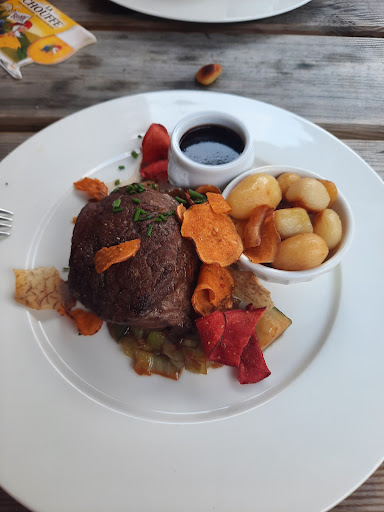 Een half uur na het weghalen van de borden gevraagd waar het hoofdgerecht blijft. Die was de dame in kwestie vergeten door te geven, bleek. Met de mededeling dat het allemaal wat langer gaat duren, zonder excuus. Ze vergat overigens een update te geven. Later werd gezegd 'het kan elk komen komen'. Na nog ruim een half uur gewacht te hebben, hebben we het hoofdgerecht afgezegd. Toen kon het ineens geserveerd worden. Wederom helaas, we hadden de tournedos zo rauw mogelijk besteld. We kregen ze aardig doorbakken.