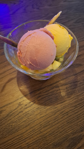 bij de vierde gang(de hoofdgang?) werd de teloorgang definitief ingezet,een stukje biefstuk,nog kleiner dan het varken werd well-done geserveerd. hier de serveerster op aangesproken,volgens haar werd het vlees eerst gerookt en hoorde het zo te zijn!?! als mij niet gevraagd word hoe de bief gebakken dient te worden,ga ik er van uit dat de kok het weet! mijns inziens zijn ze nagenoeg de enigen in nederland die menen dat een biefstuk well-done gegeten dient te worden.