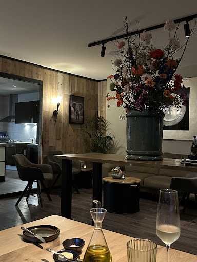 Read moreEen heerlijke avond gehad bij ‘t Veurhuis. Vanaf de eigen parkeerplaats de bordjes volgen, en aan het eind van een pad tussen enkele andere gebouwen door is links de onopvallende entree. Maar zodra je binnenstapt, wordt alles anders. Je komt terecht in een zeer gezellig huiskamerrestaurant, met zicht op de fraaie keuken die zich achter een glaswand bevindt. Er is plaats voor slechts 14 gasten, en dat betekent dat je alle aandacht krijgt van chef Johan en zijn (familie)team. De tafels staan prettig ver uit elkaar, zodat je rustige gesprekken kunt voeren en geen last hebt van gesprekken aan andere tafels.