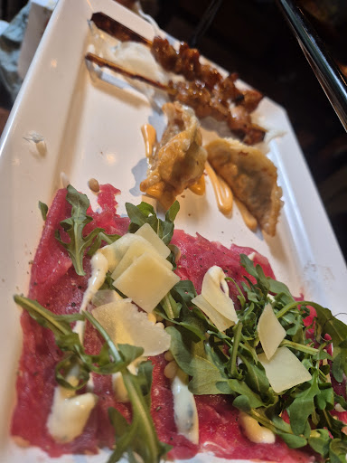 Read moreCatastrofale avond aan alle kanten. Alles plakt al bij binnenkomst. Trapleuning, tafel, vieze stoelen. Het zat vol en we zagen al gelijk dat er te weinig personeel liep. Het personeel was jong, allemaal kinderen eigenlijk, wel heel vriendelijk en direct al medelijden gezien de paniek in hun ogen. Na ruim een half uur wilden we toch graag iets drinken. We hebben verder de hele avond moeten vragen om drinken, de bestelling op te nemen etc. En wij hadden zeer zeker begrip en geduld, maar vraag me af als we zelf niets hadden gevraagd of we überhaupt iets hadden gekregen. Denk zomaar van niet. Bij elke bediening ging iets mis, sausjes vielen op de grond, de volgende ging een glas bier vol op de grond, tafel nat, onze vriend volledig nat, broek, trui schoenen, zelfs bril. We werden niet boos want de meisjes waren vriendelijk, eentje was er voor de 3e keer nog maar. Gewoon onervaren kinderen. Soep vloog klotste over het bord, met spetters op tafel en bloes. Een verkeerd gerecht. En als klap op de vuurpijl 2 van de gerechten waren zo smerig dat we die niet hebben gegeten. Er zat een sausje over de zalm, die zag er al twijfelachtig uit, die was zó ontzettend vies dat ik die heb laten staan. Een ander had het streetfood plateau en die heeft meer dan de helft laten staan. De manager kwam naar onze tafel, ook een kind, meisje had tranen in haar ogen, trillende handjes, we hebben heel vriendelijk verteld dat dit echt niet zo kan allemaal. Ze vertelde dat ze eerder op de avond helemaal alleen stond met al 48 gasten in het restaurant. Niet normaal daar. Wij zijn hier vaker geweest, weliswaar op een andere avond van de week maar toen was het altijd wel goed. Nu kun je voor deze prijs niet al teveel verwachten maar wat we gisteren hebben meegemaakt was echt bizar. We hoorden overigens ook andere klanten klagen. Ik mag hopen dat die ook een review plaatsen, dit kan echt niet. Dit was voor ons de laatste keer...