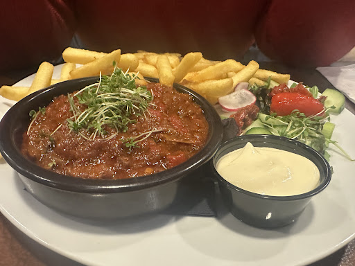 Read moreStapte met partner op een zondag rond 13.30 uur binnen voor een hapje en een drankje. Staat een bord bij binnenkomst 'hier wachten'. Na ruim 5 minuten daar gestaan te hebben maar uit ons zelf ergens gaan zitten (plek zat). Hebben zeker 15 minuten moeten wachten tot er eindelijk eens iemand onze drankjes op kwam nemen. En met ons vele in het zelfde gedeelte van de zaak die duidelijk zichtbaar geïrriteerd zaten te wachten tot er eindelijk eens iemand kwam... Eenmaal bestelling opgenomen kwam er een meisje onze drankjes brengen. Onvriendelijk en ongeïnteresseerd zonder een ook maar enig oog voor gastvrijheid! Toen er een groep van 6 mensen binnen kwamen die bij elkaar wilde zitten zei de zelfde jongeman die onze order had opgenomen dat ze opeen plek konden gaan zitten maar die door een 'divider' wel verdeeld werd in 2 groepen. Toen wij aanboden om te verplaatsen zodat de groep wel bij elkaar kon zitten kregen we een boze en onbegrepen blik van de 'gastheer' als of hij wilde vragen waar we ons mee bemoeide... Eenmaal aan ander tafeltje wilde heer onze eet bestelling opnemen, ik zei is goed maar moeten we wel eerst een menukaart hebben, wel zo makkelijk. Die werd werkelijk gewoon op ons tafeltje gegooid. Eten uitgezocht, en na 20 minuten wachten en nog steeds geen bestelling opgenomen maar naar de bar gelopen om af te rekenen, kregen we daar ook weer een boze blik van barman... Samenvattend: voor service geen ster! TIP voor eigenaar/baas van dit etablissement: Als je de drukte niet aan kan of meer personeel aannemenof delen van de zaak dicht gooien.