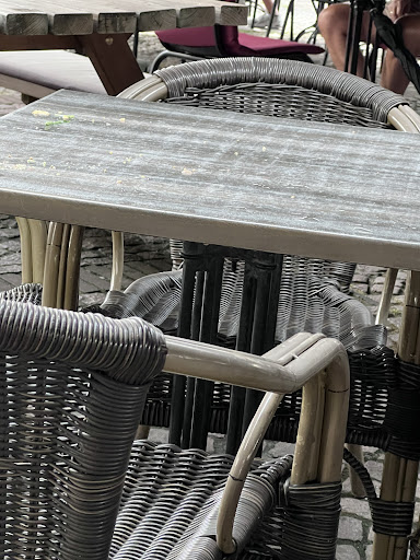 Omdat we een tafel hadden gereserveerd gingen we uiteindelijk naar binnen - maar wat een vergissing was dit ! De toegewezen tafel was vies en plakkerig, toen we hier een opmerking over hadden gemaakt ging de ober een hele discussie met ons aan, het lag namelijk aan het type tafelblad !!?? Wie voert hier de regie en heeft deze mensen uitgelegd wat klantvriendelijkheid betekend !