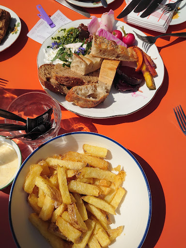 Read moreSuch a nice terras at the water, next to the ferry across the Merwede to the Brabant side of the Biesbosch. Excellent bike paths in the area. Good coffee and friendly service. All kinds of nice vegetarian and vegan options. Apple crumble was nice, brownie very good. Fries nice, grilled veggies and the mixed small fingerfood were great. Later in the afternoon the terras is in the shade, rest of the...