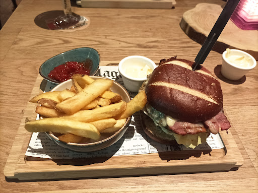 First time here and service was very nice, met all corona rules and the food was very very good. I thought I would risc the steak and guinness stew, well I am glad I did. My wife had the fish an chips and my youngest chicken nuggets and fries. I tastes all 3 and I had really nothing to complain. Maybe an idea because we would really loved to have one of the desserts but we were full. Offer a normal dish or a dish with room left...