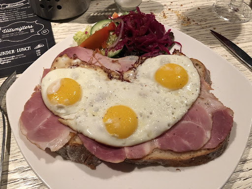 Some of the food was "ok" but nothing special (especially when you charge 20€ for a burger and 6€ for a kids ice cream without a 'surprise' (or maybe that was it?). Whereas the steak was really good but charging 4€ for 2x portions of ketchup seems excessive. Even at the cafe next door it wasn't that much.