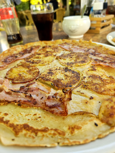 Lekkere pannenkoeken! De dames van de bediening waren heel vriendelijk. Het hele restaurant zat vol dus het duurde allemaal iets langer, maar je kreeg wel de aandacht die je nodig had. Super knap van iedereen! Enige nadeel is dat het behoorlijk rumoerig is en je moeite moet doen elkaar te verstaan. Voordeel is dat ze een leuk terras hebben en je daar bij goed weer ook lekker kan eten. Binnen is de aankleding wel erg leuk, kaarsjes staan aan en zo wordt het wel gezellig gemaakt. Pannenkoeken vullen goed en zijn ook erg lekker en goed belegd. Er is ruime keuze aan soorten pannenkoeken en ook is er friet met frikandel of kroket voor de kinderen.