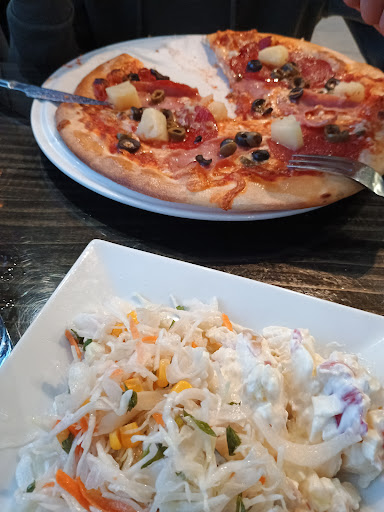 Met 4 personen pizza gaan eten. Bodem was zeker een van de betere die ik in lange tijd gegeten heb. Topping was netjes, vers & goed van smaak en niet overdreven vol. Olie op de rand was spot-on, perfect gedoseerd. Wij hebben lekker en gezellig zitten eten! Meneer achter de balie had een vriendelijk en gastvrij voorkomen. Dame in de bediening (scholier?) kan wel wat extra basis tips voor "gastvrouwschap" gebruiken. (Al is er alleen maar even gegoogled "Hoe benader/behandel ik op de juiste manier een gast") Drankje extra had makkelijk bij verkocht geweest, als er op juiste moment en gericht naar gevraagd was. Luisteren en communiceren met je gast en Inhoudelijke kennis van eigen kaart had haar ook goed kunnen helpen. Restaurant netjes, hier en daar wat gedateerd/beschadigd. Eigenaar moet misschien een keertje zelf door de zaak lopen/gaan zitten en wat dingen weghalen, vernieuwen, verplaatsen/herschikken, etc. Prijs netjes...