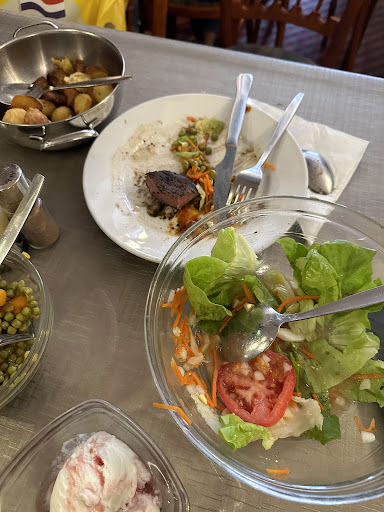 Read morethe food was honestly, pretty decent. nothing too god but it wasn't bad either. the problem was the service, we (2 people) arrived and they immediately tried to seat us with another group of 4 people who we didn't know, they were just as weirded out as us, and even though sitting down with random people is pretty common in europe, that's only when the restaurant/bar/etc is full, this time it was empty except for a few tables. the other thing is that the 3-course meal menu doesn't work for everyone, the only entree was veg soup (it was decent), which they gave to us unannounced. then the main dishes were all meat (which we didn't have a problem with) that came with a bowl of roasted potatoes, a plate of baby carrots, a plate of beans(????) and a salad, that is a lot of food! and after that there is dessert, which we declined. the problem with this type of menu is the amount of food wasted, because; for example, I eat a small amount of food, one plate and that's enough, and the person who was with me can not eat very much either, so all the side dishes ended up being wasted. the waitresses seemed very much in a hurry for everyone to leave, one of the waitresses even asked the table behind me (who came in a few minutes before us) if they wanted the check when they had just finished the food. we were charged 39 euros, which isn't horrible but we have eaten better for way...