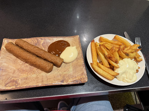 De frieten (we noemen dat geen patat 😱) zijn echt lekker. Evenals de nasibal. Bestelling was precies op tijd klaar op het tijdstip aangegeven in de app. Tot zover de lofzang. Cheeseburger op een broodje dat eigenlijk nog afgebakken had moeten worden. Friet was best wel zout, voor mij geen probleem maar is niet voor iedereen. Had een bakje warm vlees besteld maar kreeg een broodje warm vlees waarbij het broodje eigenlijk alleen maar pap was. Hotdog met de saus bovenop het broodje ipv ertussen. Maar het aller aller ergste… een frikandel speciaal zonder inkeping gebakken en de saus er gewoon half naast tegenaan in het bakje geplemd. De persoon die dat doet zou nooit meer een snackbarkeuken van binnen mogen zien! Het was ook wel goed aan de prijs allemaal dus ik zou iets meer moeite verwachten. De derde ster is echt alleen voor de...