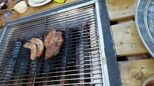 Voor het eerst een social deal… wat een flop. Voorgerecht een stokbroodje met kruidenboter. Die was op zich nog goed, een pistolet met voldoende kruidenboter. Hoofdgerecht hadden we allebei de kipsate. Dat heet een super kipsate… nou als je een super voedselvergiftiging wilt oplopen… rauw! Teruggestuurd en daarna kwam het wel gaar en heet terug maar ineens minder kip? De frietjes superzout en we hadden nog de rauwkost gevraagd zonder ui...nou daar zat flink wat rauwe ui in. De glazen waren ook niet echt schoon. Vingervlekken zaten er in overvloed op en mijn cola sloeg zogeheten dood. Wegens personeel gebrek kon je alleen buiten zitten. Het was mooi weer dus dat is geen probleem... alleen is het wel een terras waar aardig wat mensen roken en je dus NIET kon kiezen om uit de rook te zitten. Dan het sanitair..op een camping zijn de sanitaire voorzieningen nog beter! De plaktegels in deze omgebouwde pipowagen vallen van de muur. Nee, dit was geen succes. De serveersters hadden het door en deden hun best maar het was het...
