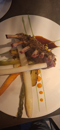 Bisque genomen, prima op smaak, goed warm, alleen maar 1 gambaatje en verder niets. Dat heb ik als kaal ervaren en toch 15€. Hoofd was een paas special met asperges en lamsrack. 4 flinke asperges op het bord, een koud hoopje (soort van pureetje) met iets van ei smaak en de rack. Daar zag ik weinig fantasie en best een hele hap 4 van die dingen zonder iets erop of eraan. Een lekker gepocheerd eitje of iets met bieslook/peterselie had een optie geweest. Maar goed, keuzes van de kok. De lamsrack was ver over. Dus helemaal grijs van binnen. Ik gaf dat aan en ging nieuwe krijgen. Het bord is dan leeg en de nieuwe kwamen. Wel beter, maar als je lamsrack zo bereid dan snap je het echt niet. Ik heb dat niet meer teruggegeven, maar alleen gezegd dat de nieuwe beter waren dan de eerste. Die horen mooi roze rood te zijn en supermals. Even op cursus met de kok. Het gerecht was wel gewoon 35€, dat vind ik echt veel te veel voor de kwaliteit en creativiteit die hierin voor mij duidelijk onder de maat is. Ik hoef hier niet meer heen. Het toetje heb ik...