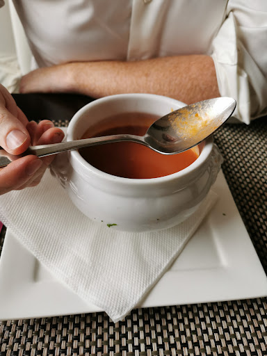 Afgelopen woensdag etentje kado gekregen van mijn meisje. Het Social Deal menu. Volgens de foto's mooie zaak en ook in realiteit ziet het er netjes en verzorgd uit. Helaas als je wat beter kijkt vertonen nogal veel stoelhoezen vlekken, alsook de witte tafellopers. Jammer als je zo binnenkomt. Wij waren heel vroeg, rond 17.15 uur en werden vriendelijk geholpen door een van de koks. Pas later arriveerde de jongen die de bediening op zich moest nemen. Ook hier weer details; de sloof die deze jongen droeg zag er uit alsof hij die al 3 dagen aan had. Wederom jammer.