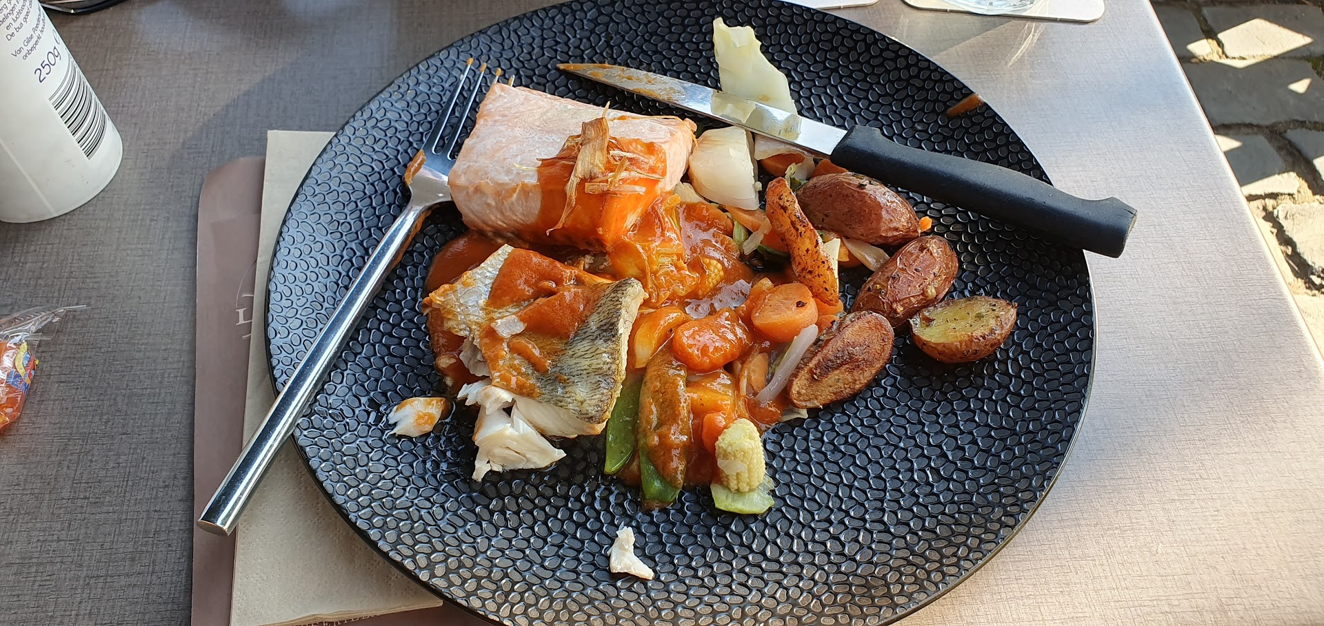 Read moreWe zijn verschillende keren in deze zaak geweest, voor een koffie, lunch of diner. Vandaag waren we met z'n drieën en we bestelden een vispannetje, een saté van varkenshaas en een gepaneerde schnitzel. De saté was niet de beste maar goed, de schnitzel was op meerdere plekken aangebrand en de saus veel te dik gebonden, waarschijnlijke gemaakt van zo een knorr poeder een champignons van een blikje. Het vispannetje de vis was zo gaar dat de vis veel te hard en veel te droog was geworden maar het mooiste is dat nadat ik 2/3 van het gerecht heb gegeten, een stukje, ogenschijnlijk blauwe plastic, in het pannetje gevonden heb dat door zijn vorm en kleur een stukje nagelreconstructie had kunnen zijn. Ik roep de ober en hij geeft heel beleefd toe dat de vis slecht gekookt is, verontschuldigt zich en vraagt of ik een andere vispannetje wil. Voor dat stukje plastiek hij geeft geen uitleg. Eerlijk gezegd ik had geen zin meer. Waarop de ober zegt: ok kan ik je dan iets om te drinken aanbieden om het goed te maken? Maar ik had nog wat wijn, dus ik weiger. Na een poosje vraag ik echter om een flesje water en daarna de rekening. Nu komt de teleurstelling: het enige dat wordt gedaan om die culinaire enorme fout op te lossen, is de fles water van de rekening af te trekken wat mij echt een slechte manier lijkt om deze culinaire onaangename ervaring te compenseren. Ik laat het hierbij en laat ik aan de manager van het restaurant over om te mediteren over wat de manier zou kunnen en moeten zijn om met zo'n...