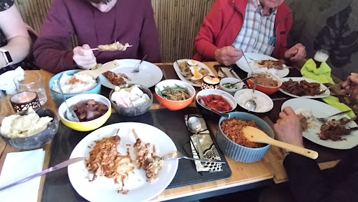 Read moreToen we binnenkwamen was er 1 tafel met mensen (volgensmij waren het vrienden want de eigenaar en familie zat aan dezelfde tafel te eten) we hebben besteld en kregen na 5 minuten kroepoek met sate saus je zou denken, daar kan niet veel fout mee zijn, nou dan denk je verkeerd want de sate saus was eigenlijk gewoon pindakaas. En na een half uur wachten kregen we loempia’s ,die we overigens niet besteld hadden, nog een half uur later kregen we eindelijk onze rijsttafel. Wij dachten dat het een heerlijke rijsttafel zou worden vanwege het lange wachten. Maar dat bleek niet zo te zijn, er zat aan sommige dingen een zure smaak en dan weer de state stokjes met die “heerlijke” sate saus. Update van 2 uur later: ik bespaard je de details maar heb enorme maagklachten en maagkrampen. Dus, Leuk tentje om te zien maar leuker on er langs te lopen We hadden bestel de rijsttafel speciaal: 2/10 rijsttafel: Nasi Goreng en Witte Rijst Loempia Kip Rendang Babi Ketjap Ayam Sisit Sate Ayam Gado...