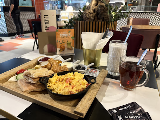 I went there with my family and we ordered Kumpir, Gözleme (both are mediterranean style) and fries. Kumpir was leicht and fresh with green stuff on top, fries was really fresh and best ever with tasty ketchup. For gözleme, vegetables inside was not homogeneous. Partly with potato and cheese (was tasty) , partly big pieces of aubergine (lack of taste). I would kindly recommend to grind all ingredients (patlıcan rendelenmeli ve sotelenmeli hepsi) and make a well distributed taste overall of the Yufka.