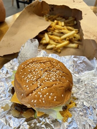 Read moreThis was my first and last visit to this catering establishment. At first it was strange why there were no cash registers for ordering in the hall, but only a live queue. Then it turns out there is an application through which you can order, but I just pass by and want to buy food, and not bother with downloading the application, entering my personal data, card, etc. Okay, then there was a long queue in the hall because there was a problem with the cash register. I ordered a bacon cheeseburger for 14 Euros, fries and a drink, in total it cost me 24 Euros. To my surprise, the burger was the size of a cheap burger at McDonald's for 2 €, but not a burger for 24 Euros. Two cutlets were completely made of ground cartilage with fat ... terrible taste and execution. In the photo you can see what the dish looks like after it has just been cooked. As if I put it under the mattress and only took it out after yesterday's party. The hand-cut potatoes that were touted in the advert looked like they were leftovers from yesterday's shift. The place itself is noisy. People are constantly coming in and looking for leftovers on the tables, which makes me feel like I'm in a homeless shelter, not...