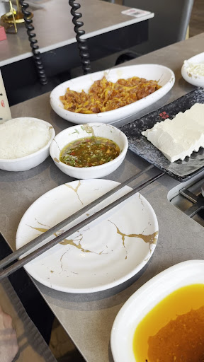 Read moreI’m rating four stars, but mostly for the experience. It’s fun to do with your significant other or with a group of friends. You get to boil your own food using the hot pot station and you can make your own dipping sauce up front. The menu has a lot of options, varying from meat and fish to vegetables. The food itself was okay. The variety was nice, but it’s kind of the same. The non-marinated dishes all taste like the soup and the marinated dishes had a strong, ginger-citrus like marinade that I did not like. I can recommend the minced shrimp and shrimp dumplings. If you want a non spicy soup, pick the tomato one. It wasn’t really expensive but since you’re ordering a lot of dishes to try them, the bill can get quite high. The servers were really nice and helpfull if you had any questions. They also give you a guide on how long you have to cook everything. Overall,...