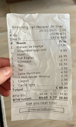 I am also putting the bill for your reference. Their prices are not quite like a regular cafe or breakfast place in the Netherlands, but a decent restaurant where you can have your dinner in a fancier and friendlier atmosphere.