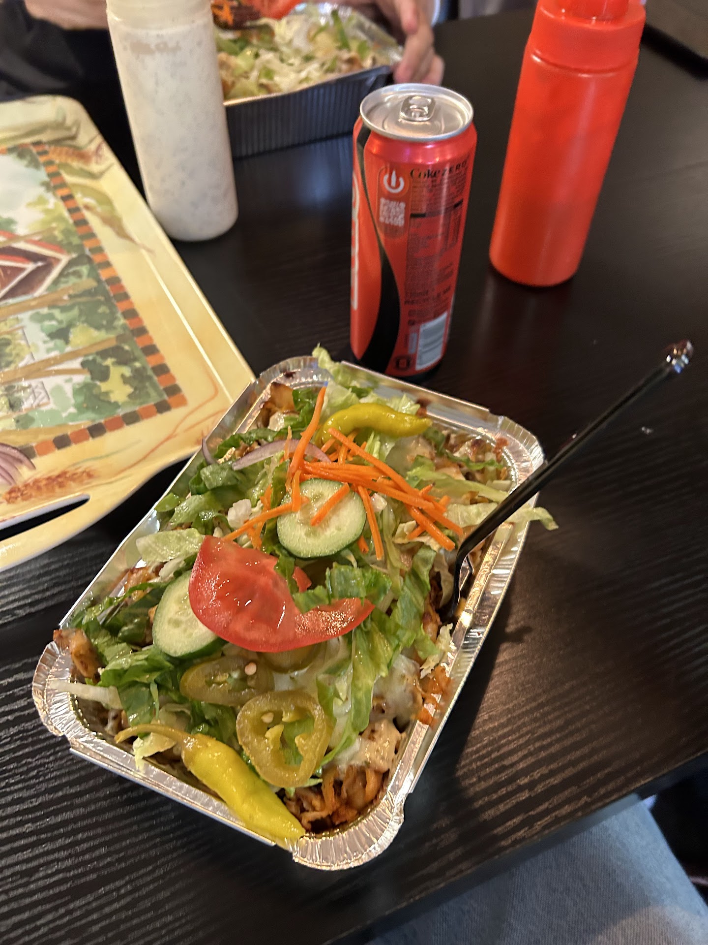 Vandaag, dinsdag; Ik ga met m'n zoontje achterin de zaak zitten ( zitten we altijd) , wordt ineens de tv aangezet op achterlijk hard geluidsniveau, kapsalon zonder sambal besteld, halve kapsalon bevat alsnog sambal, zit amper vlees in de kapsalon en ze hebben ineens zogenaamd geen kartonnen bekertjes meer dus moest m'n zoontje uit een kartonnen rietje drinken wat dus niet lukt met prik ( na drinken duwt koolzuur een hoop bovenuit het rietje). Vriendelijkheid was het personeel onbekend vandaag. Kortom geen goed woord over de service en het eten.