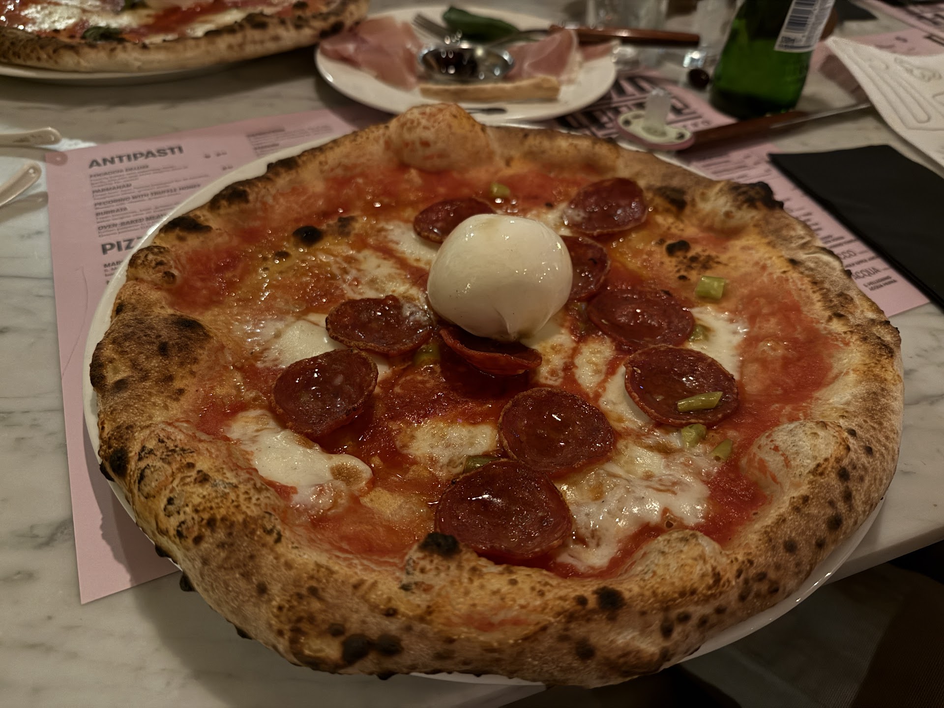 Read moreThe food is exceptional, one of the best pizzas we’ve had in Eindhoven. Only downside is we were too full to experience their dessert, and the options looked so decadent. At first sight the place doesn’t look like a kid friendly location, its teeming with twenty-somethings enjoying dinner. But there are tables suitable for families too! we were taken to the one at the back, I recommend this for people with small children. As a vegetarian I was pleased with the number of options the menu presented. My husband was raving about his ham starter and pepperoni pizza. Overall, a successful dinner out with two small kids - a new milestone for our family. Thanks to the wonderful wait staff! P.S : if you want a spicy punch in your pizza, add their chilli oil...