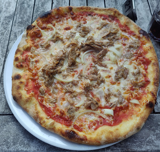 People working here 5 stars, quality barely 1; I don't know if it is target customers who don't know what pizza is? This is bad, sorry. Pizza dough is like 2-3 weeks freezer old, pommodore pasta is saggy( !( and I stop there); Drinks, they offer 10.5 eur "belini martini" has nothing to do with it. Tranpsarent liquid mixed with something red - misleading! Then atmosphere, dog lovers amazing 5 dogs barking all the time, super cool.then green flies I had 5 over the meal.constanly ( make sure they leave a menu at the table to chase them); Sorry, this is bad. Intent of my review is to improve, however you should be able to provide service for price. 18.5 eur pizza in this atmosphere, don't spoil someone...