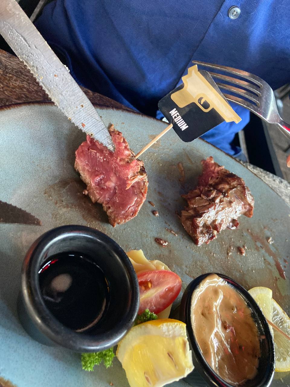 Read moreWhaaaat a delicious dinner! It is one of the best ribeye I have ever eaten. I ordered ribeye steak as medium cooked and it was exactly what I mean as medium cooked, juicy and tender! Also special mix grill plate was tasty, but spare-ribs Changed the game and it had extraordinary taste! It was not too sweet and fulfilled with BBQ sauce as other restaurants. They know how to cook it and how icy flavor you need to eat your last piece of your food with joy. Do not forget to order Shiraz wine with your steak. Cesar salad was also good, not too much sauce and the most important part was that they know how to cook the chicken fillet. Just amazing! Tiramisu was also great. The vibe was cozy with wooden decoration and staffs of restaurant were friendly and caring. All in all, if you want to have a great and high quality dinner with your friends or family and enjoy it without any doubt, here...