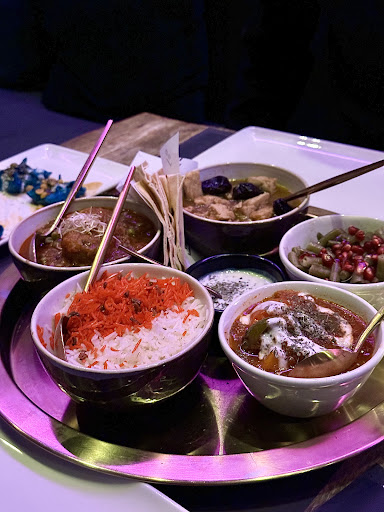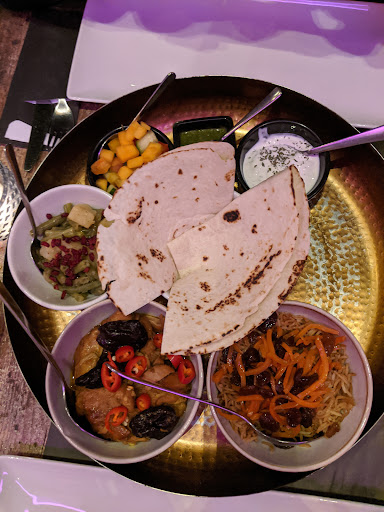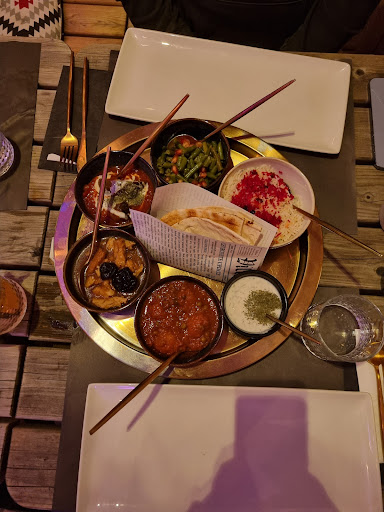 We really liked the place here! The food had a lot of flavor in it. The course meals consisted of an entree with samosas, falafels and a variety of dips, which was very diverse in taste. The main course consisted of many different dishes in bowls on a plate called a āmezzeā. Most things werenāt too spicy for us, so we liked that. It was very filling and we couldnāt eat all, unfortunately. But they gave us a doggybag for the leftovers, which was an unexpected service we appreciated to lessen waste. The dessert consisted of three different delicacies with varying flavors, showing that people who donāt like certain things could still enjoy something else. But we ate it all, anyways! The service was very customer-friendly. They did things like take our jackets, recommend any drinks weāve never heard off, asked us how the food was and tended to our needs even without us needing to ask. We even had a little chat with some of the staff members, who were very open and friendly, making jokes here and there with us. We liked the atmosphere. It was very cosy and had a comfortable ambiance to it. The music was not too loud or too soft and also created an atmosphere where people could talk leisurely without feeling as if the music was too loud or that there were too many people. We would recommend this...