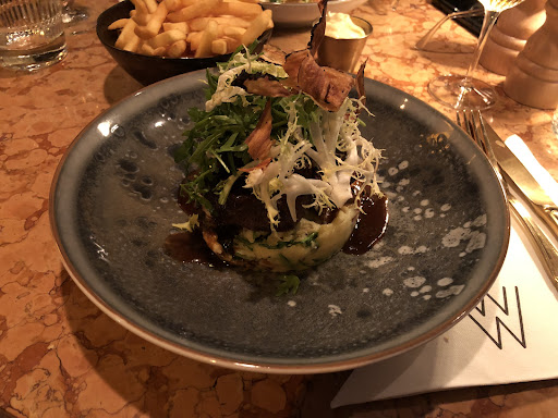 We werden direct geholpen aan de kaart en een drankje welke mooi vlot werd geserveerd. De kaart niet enorm groot, wel redelijk aan de prijs maar alle 4 hebben wij een keuze kunnen maken. Een prachtig voorgerecht welke om te smullen was en vervolgens het hoofdgerecht. Bij alle 4 anders en alle 4 echt mega goed. Wat een mooi opgemaakte borden en heerlijk bereid. De bediening diende het super mooi op door het tegelijkertijd uit te serveren en de borden ook mooi te draaien voor de goede beleving. Een heerlijke wijn erbij maakte het compleet. De bediening werkte mega hard, zagen alles maar maakte niet de indruk van hard werken en dat geeft een heerlijke beleving. Iedereen wist zijn of haar taak en voerde deze perfect uit. Voor de gast is het heerlijk te weten en te zien dat er goed voor je wordt gezorgd en te zien dat dit geen enkele moeite is.