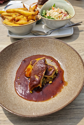 Overpriced place to dine in, quality of food was a shock for the price you paid. Not even a bread and butter to start with. Ordered foie gras de canard unexpected portion and it was served without a brioche for 22.50 euro. We also ordered tournedos and the meat wasn't tender. We were served a kids size sharing portion of fries and salad. 70 euro euro lunch wasn't that expected. They say when a restaurant do not serve a fresh warm bread, you know the result. Waitress came to collect cutlery without asking if my meal was good and can be collected. Not a restaurant in Eindhoven I would recommend to return again when there are much better options available out there even in a bigger city we'd experiences in Paris, London,...
