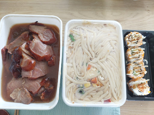 €25,75 for these...(including €2,5 for delivery, €0.35 plastic). I'll not order it again nor go to this restaurant; the shrimp inside the sushi is still crispy but it is not as fresh as Sushi8 and costs €5,40; the cha sieuw is the most disappointing, it looks big but underneath are fulled of tauge (bean sprouts) which costs no more than €0.5, drowned in soya sauce and fat, it supposed to be bbq pork! luckily, the meat itself is not too hard, but tastes like from frozen factory ready-made food, for sure not fresh grilled chai sieuw, the restaurant do have a nice griller in the kitchen, why not making this properly?...bami is the best among all, with fresh eggs inside, though the noodles itself is the cheapest type. In conclusion, I recommend Hung Ying, Frederiklaan 199 instead, week menu €12,6 with several dishes and piping hot🔥 as fresh...