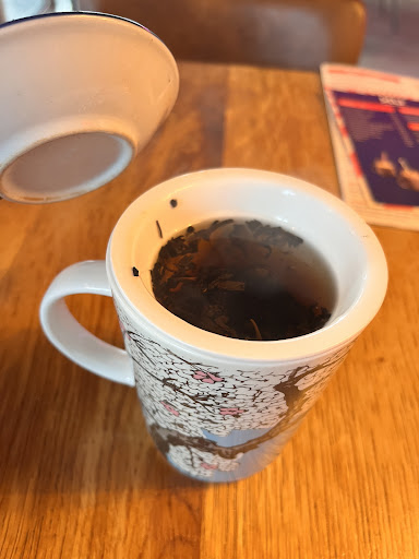 I ordered one of their hot teas, it is served in a unique way, it has two cups one inside the other. When you pick up the first cup, the tea is filtered out ….. pretty cool.