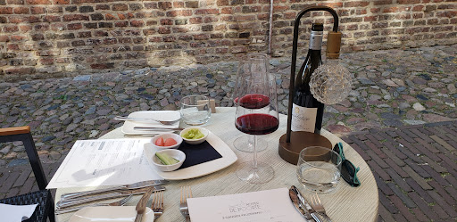 Read moreAllereerst wil ik beginnen met de locatie. Die is leuk. Het terras zit echt tegen de poortmuur aan en dat geeft het een authentiek karakter. Een ander pluspunt is de opmaak van de borden. De gerechten zagen er optisch goed uit. Het eten zelf. De amuses waren smaakvol, het kerrie hapje vond ik lekker het koekje iets minder maar het moet maar net je smaak zijn. Als voorgerecht had ik de maishoender, het zag er leuk uit echter was de "gerookte kip" zelf niet smaakvol. Zowel ik als mn partner vonden dat het de smaak van het gerecht tekort deed en er was twijfel of dit niet gewoon bij de groothandel vandaan kwam. Ik heb een stukje van de zeebaars mogen proeven en deze vond ik heel blend, ook de bouillon smaakte erg flets.