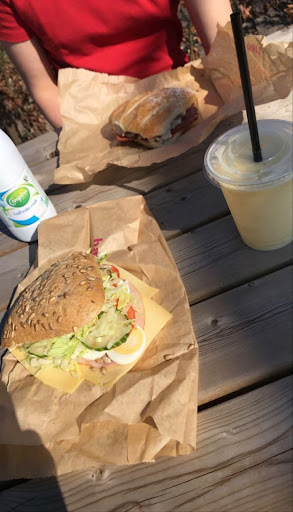 Alleen de smaak viel tegen. Brood was wat aan de droge kant. Maar weggespoeld met een meloen aardbeien sap. Deze was erg lekker maar helaas in een slappe plastic beker met deksel waardoor het heel erg lekte bij het drinken.