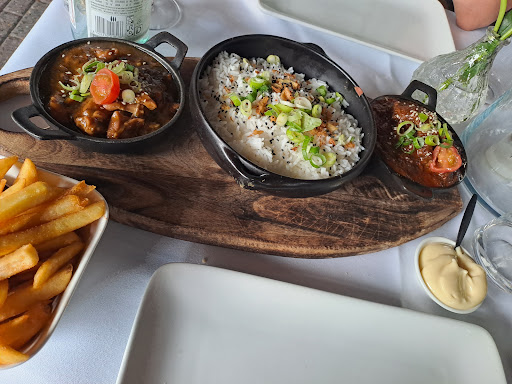 Read moreOntvangst was niet gastvrij. We mochten zelf een tafel buiten uitzoeken maar die waren gedekt voor twee, maar we waren met drie. Dus weer naar binnen, nou er waren geen stoelen voor een derde plek. Uiteindelijk mochten we aan de ongedekte lange tafel met banken zitten. Deze tafel werd ook niet gedekt voor ons. De 1e wijn werd geserveerd in een vies glas met lipstick. Eten was ok, nwst prijzig en niet bijzonder, allemaal erg zoet door de Aziatische ketjap twist. Wij bestelden een van duurste wijnen van de kaart, werd niets over gezegd en konden niet voorproeven. We hadden veel last van wespen en vroegen of de tafel kon worden schoongemaakt want er was wat fanta door onze zoon gemorst. Serveester komt met dweiltje maar laat ons zelf de tafel schoonmaken. Bedroevende service! Voor de helft van de prijs aten wij deze week in Steenwijk met een prima en attente service....