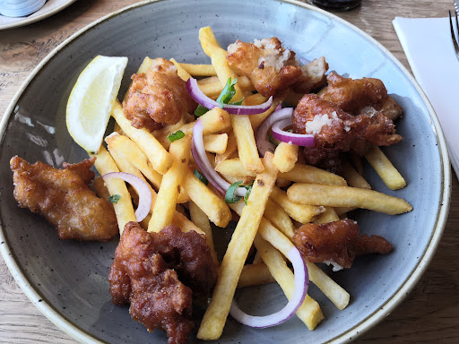 Porties vis lijken minimale voorgerechten, terwijl het hoofdgerechten zijn. Patat wordt bij meerdere mensen vergeten, mayo komt op tafel na herhaaldelijk vragen, als iedereen is uitgegeten. Franse friet besteld, gewone friet geleverd.