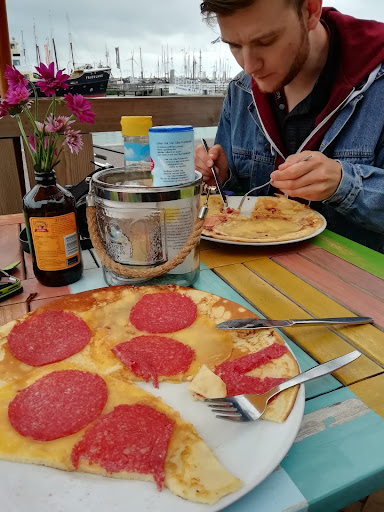 Read moreWe ate 2 big very delicious pancakes here, the waitresses were very kind, even though they spoke little English they helped and answered the questions. Service was a little bit slow, I guess because of the many guests, but it worths the waiting! Salami pancake is supergood! (The English menu card could be improved, bringing 2 pieces of paper is not...
