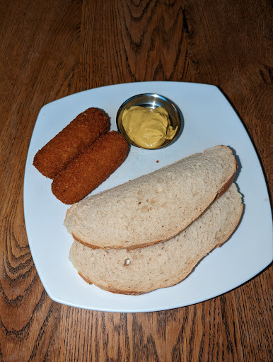 we got our drinks and after about half an hour we started wondering where they were as we did start to get a bit peckish and hadn't eaten yet. they arrived after a bit more than half an hour. one was okay, the other was cold in the middle, like still half frozen cold in the middle. there was a sad cut up pickle in a little saucer and the musterd mayo was no-where to be seen. we informed the waitress and it was taken back to the kitchen. to get us new ones. it would have been fine if they expedited the second try but we proceeded to wait rather long for the mulligan and our lunch hour was slowly creeping in to the 2 hour mark. so we skipped.