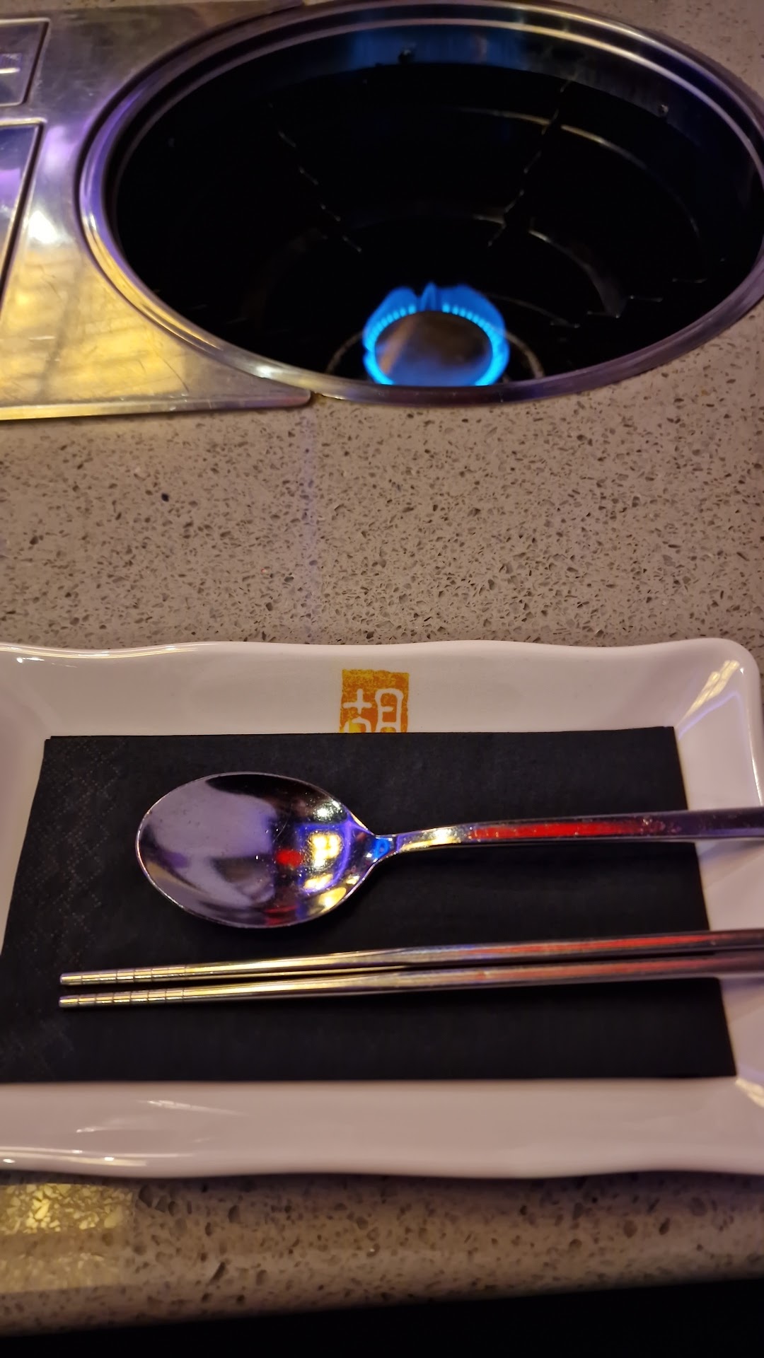 Read moreWir waren mit einer größeren Gruppe hier um Hotpot auszuprobieren. Für 7 Leute haben wir im Voraus reserviert und den einzigen Runden Tisch im Restaurant bekommen, so war die Atmosphäre sehr gesellig. In der Mitte des Tisches wurde dann der besagte "Feuertopf" mit 2 verschiedenen Brühen platziert. Wir haben uns für "Ying" (leichte Entenkonsommee) und "Kimchi-Style" (leicht scharf, sehr zu empfehlen!) entschieden. Insgesamt gab es 8 verschiedene Brühen zur Auswahl, zB noch Yang (sehr scharf), Pilzbasis, Fischbrühe etc.