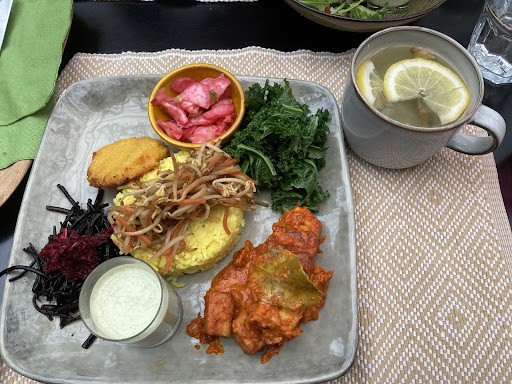 Read moreWe had a wonderful experience at Earth Café. The atmosphere is comfortable and homey. The service is friendly, and the owners are warm. The market dog is adorable (honestly I'd come back just to pet him). The food is frankly incredible: I don't know how they managed to create such a creamy texture with vegan ingredients. The flavors were perfectly balanced. We both ordered the Planet Platter and were delighted. I ordered a staggering amount of food (three courses and wine, as did my boyfriend) and was pleasantly surprised when our bill was not only reasonable, but lower than I'd expected (and yes, I double checked). On the way out, we were able to grab some nice bread from the market and some more of the homemade kimchi. We'll be...