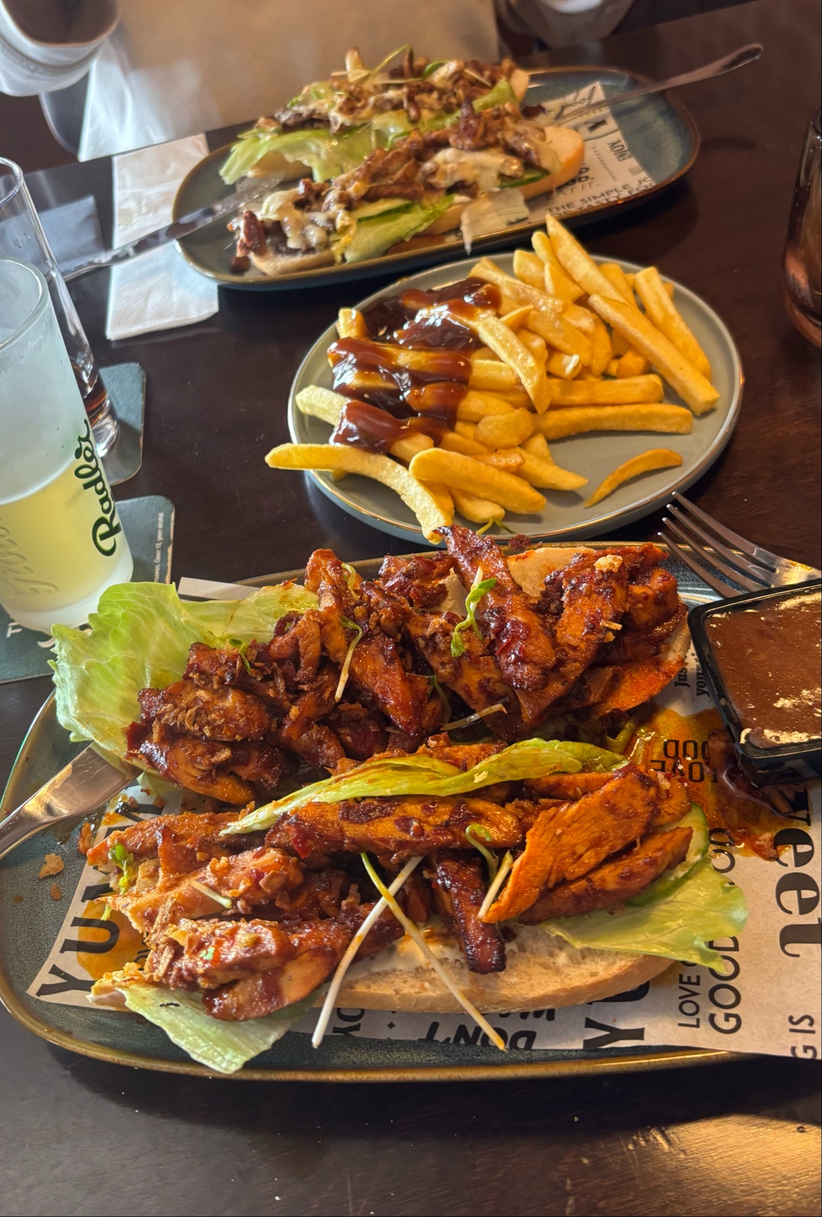 Regarding the food, we ordered the hot chicken and the shawarma sandwiches and both were delicious! The klein fries are already quite big, so beware🙃. The prices are very...