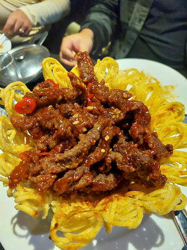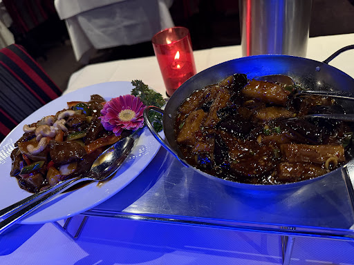 We had Hong Shao Qiezi - Bebakken aubergine met knoflook in beansaus Kong Po New ossenhaas in een zacht pikante chilisaus met cashewnoten