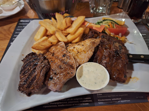 Read moreLocatie is prachtig en het idee van lekker pannenkoeken eten met de kinderen bracht ons hier. We werden geplaatst naast de aquariums die helaas wel een schoonmaak beurt konden gebruiken. Ook hing er een nare lucht. De aankleding was meh, maar wetend dat er veel kinderen zijn begrijp we dat er hiervoor gekozen werd. De meiden die er liepen was heel behulpzaam en gastvrij. Al viel het op dat ze letterlijk allemaal het zelfde waren, donker blond / bruin lang haar van rond de 18. De manager leek een vaste plek bij de bar te hebben, beetje rond kijken, die kwam in 1 uur tijd 1x van de de plek. Werden er een beetje ongemakkelijk van. Eten was supermarkt kwaliteit (pannenkoeken waren wel wat beter, moet ik eerlijk zijn). Maar stokbrood, de sausen, patat, het miste de liefde van een chef. Ook vond ik 5 euro voor 3 slokken goedkoop smakende wijn, een beetje jammer. Maar de kinderen (6 en 9) vonden het leuk, en daar...