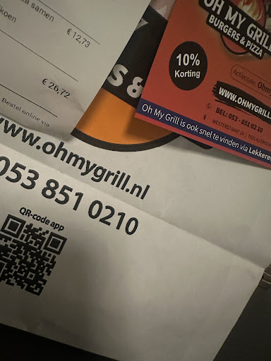 Read moreHierbij vandaag bij oh my grill besteld via hun website stond bij als je via ons website besteld krijg je een gratis drankje of snacks. Prima wij hebben via hun website besteld en ook bij de opmerking als het kan i.p.v aardappel schijf graag frietjes en normaalgesproken bij de schotel zouden nog salade bij krijgen die ook helemaal niet gekregen wat belagelijk . Er is helemaal niet geantwoord . Bij de gratis drankje of snack hebben wij hellemaal niet gekregen wij hebben 15 keer gebeld wordt de telefoon niet opgenomen heel onbeleefd omdat zij weten waarschijnlijk en zij willen niet hun fout corrigeren en gratis geld verdienen ik zal nooit meer...