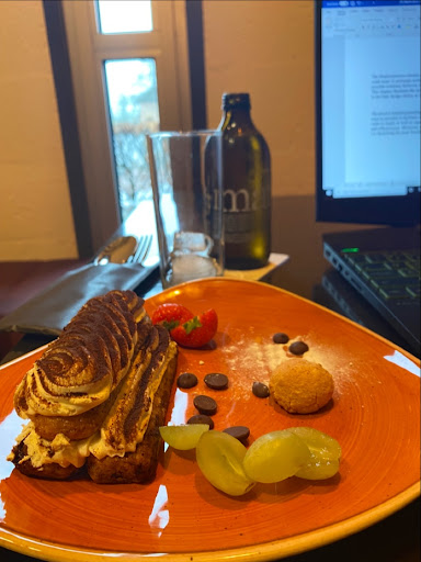 I guess the food there is pretty good, in general. They were kind of hesitant to offer an vegan option when i asked for one, you have to buy something from the menu to be allowed to sit there, and they play the radio really loud during weekends, so students do not go there to sit and study (which i assume, they do on purpose). Overall, for a restaurant it is good, but for a facility at a university it...