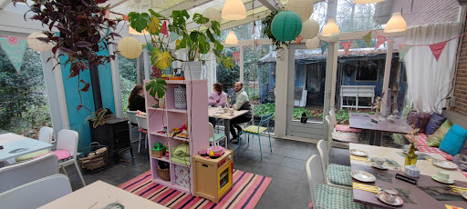 Read moreIk had van mijn dochter voor mijn verjaardag een cadeaubon gekregen voor dit theehuis. Dus we hadden voor het weekend gereserveerd voor een high tea. Dus ik en mijn dochter gingen naar ik en mijn moeder ;) Wat een ontspannen uitje werd dat, zo gezellig die hoekjes in de tuin, vanaf waar ik zat hoorde ik het klaterende water van een fonteintje op de achtergrond, en de tuin is enigszins verwilderd maar dat maakt het juist zo charmant en knus en je voelt je als ben je even weg van de drukte van alledag. Niet alleen het oog maar ook de maag werd verwend, we kregen allerlei lekkernijen, van toblerone gebak tot smoothies, hapjes met geitenkaas en worteltaart, en natuurlijk de scones en sandwiches niet te vergeten en alles was heerlijk en het werd smaakvol gepresenteerd en thee en koffie kon je onbeperkt erbij nemen. En heel veel keuze uit allerlei thee soorten, voor iedereen zit er wel wat bij. De bediening waren jonge mensen die heel goed hun best deden het iedereen naar de zin te maken. Ik kom zeker terug en zal jullie van harte ...