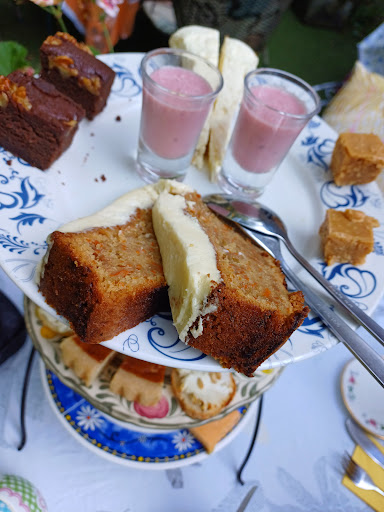 Read moreIk had van mijn dochter voor mijn verjaardag een cadeaubon gekregen voor dit theehuis. Dus we hadden voor het weekend gereserveerd voor een high tea. Dus ik en mijn dochter gingen naar ik en mijn moeder ;) Wat een ontspannen uitje werd dat, zo gezellig die hoekjes in de tuin, vanaf waar ik zat hoorde ik het klaterende water van een fonteintje op de achtergrond, en de tuin is enigszins verwilderd maar dat maakt het juist zo charmant en knus en je voelt je als ben je even weg van de drukte van alledag. Niet alleen het oog maar ook de maag werd verwend, we kregen allerlei lekkernijen, van toblerone gebak tot smoothies, hapjes met geitenkaas en worteltaart, en natuurlijk de scones en sandwiches niet te vergeten en alles was heerlijk en het werd smaakvol gepresenteerd en thee en koffie kon je onbeperkt erbij nemen. En heel veel keuze uit allerlei thee soorten, voor iedereen zit er wel wat bij. De bediening waren jonge mensen die heel goed hun best deden het iedereen naar de zin te maken. Ik kom zeker terug en zal jullie van harte ...