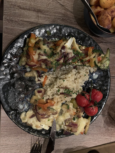 Een matige en wisselvallige ervaring. Het ontvangst was al niet prettig. Mijn vrouw en ik werden naar ons tafeltje gebracht maar nog voor we zaten was onze gastvrouw afgeleid door een andere persoon zonder dat daar aanleiding voor was. Ze kwam een beetje warrig over. Bij het opnemen van de bestelling was het mis en waren we bijna weggelopen. Mijn vrouw is net zwanger en wilde graag het gerecht van de varkenshaas saté maar dan met kip, omdat anders de varkenshaas helemaal gaat zou moeten zijn en dat is met varkenshaas niet lekker. De dame gaf meteen aan dat dat niet mogelijk is en begon andere gerechten voor te stellen. Een aantal mag mijn vrouw gewoon niet hebben (ossenhaas, andere varkenshaas gerechten) en een aantal vindt ze gewoon niet bijzonder (schnitzel). Daarnaast moet het toch niet zo moeilijk zijn om van die varkenshaas saté gewoon een kipsate gerecht te maken... Na aandringen ging ze overleggen met de keuken en was het toch mogelijk. Goed... Dat hadden we gehad. Helaas vielen de hoofdgerechten erg tegen. Frietjes goed. Krieltjes goed. Bijgeserveerde bietjes goed. Maar het vlees... Hordroog. De kipsate van m'n vrouw waren 2 spiesjes met kleine blokjes borstfilet. Mijn mixed grill waren 3 spiesjes met kleine blokjes kippendij, varkenshaas en ossenhaas. Zelfs de kippendij hebben ze droog gekregen. En daar moet je normaal je best voor doen. Varkenshaas was ook volledig gaar gebakken en taaieg. Ossenhaas te zout. En de hoeveelheid was voor 25.95 echt veel te weinig. Ik denk dat het krap 300 gram is geweest. Ter vergelijk: voor 24 heb ik bij het steakhouse een 400 grams sappige steak op m'n bord. Hier zal echt wat aan gedaan moeten worden. Die prijs is alleen te rechtvaardigen als er ruim vlees aan spiezen wordt gestoken wat ook nog is echt goed bereid is. Aangezien het vlees het belangrijkste onderdeel is van het hoofdgerecht was dit dus een dikke tegenvaller, ook al waren de bijgerechten wel lekker. Krieltjes waren bijvoorbeeld lekker zacht. En de frietjes mooi krokant. Niet alles was matig gelukkig. Beide desserts waren echt goed te noemen. Degene die de desserts bereid weet in ieder geval wat die doet. Mijn tiramisu was goed van smaak en het bordje leuk opgemaakt. Keurig. De brownie van mijn vrouw idem. De chocolademousse daarbij was heerlijk zacht. Daarbij wil ik vermelden dat de jongeman die ons dessert opnam adequaat reageerde op onze vraag of er in het brownie gerecht nog iets was om rekening te houden met een zwangere vrouw. Hij kwam snel terug dat er geen rauwe eieren zijn verwerkt maar wel dat alcohol in de mousse die bij het verwarmen is verdampt.