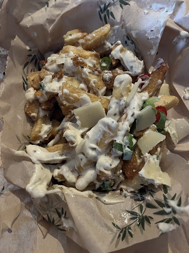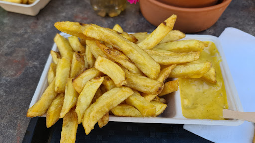 We hadden trek en besloten hier een patatje te eten. Ik had een kleine patat oorlog en mijn vriend een middel patat oorlog. Er zat zeer weinig verschil in de grootte en ik vond dat er net te weinig saus en uien bij zat. Daarnaast was het leuker geweest als het erbovenop lag in plaats van in het vakje voor de saus. Verder vond ik de patat net te slap, alsof het nog niet lang genoeg had gebakken. Personeel is wel vriendelijk. Geen toilet aanwezig. Het is wel wat anders dan de standaard patat die je normaliter krijgt bij een snackbar en als het goed gebakken is zal het zeker lekker zijn. Voor de prijs die je betaald (saus meegerekend €1) vind ik het 't niet waard. De speciale opties voor patat zoals de parmezaan vind ik buiten proportie...